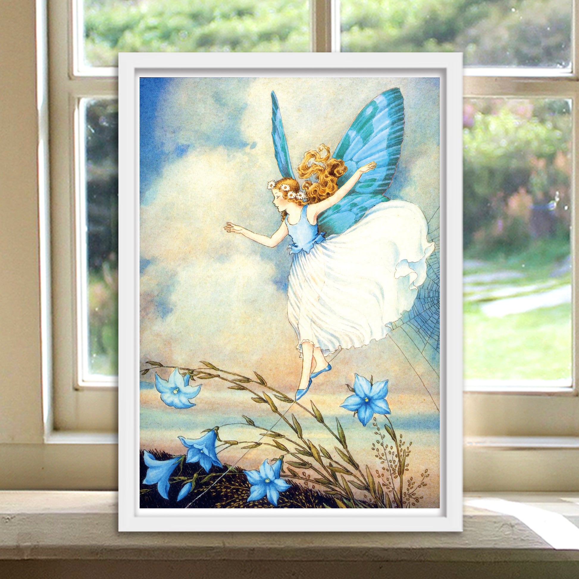 物語の妖精 ブルー/ 高品質紙 アンティーク・ヴィンテージ マット紙 A4 IKEAフレーム入り